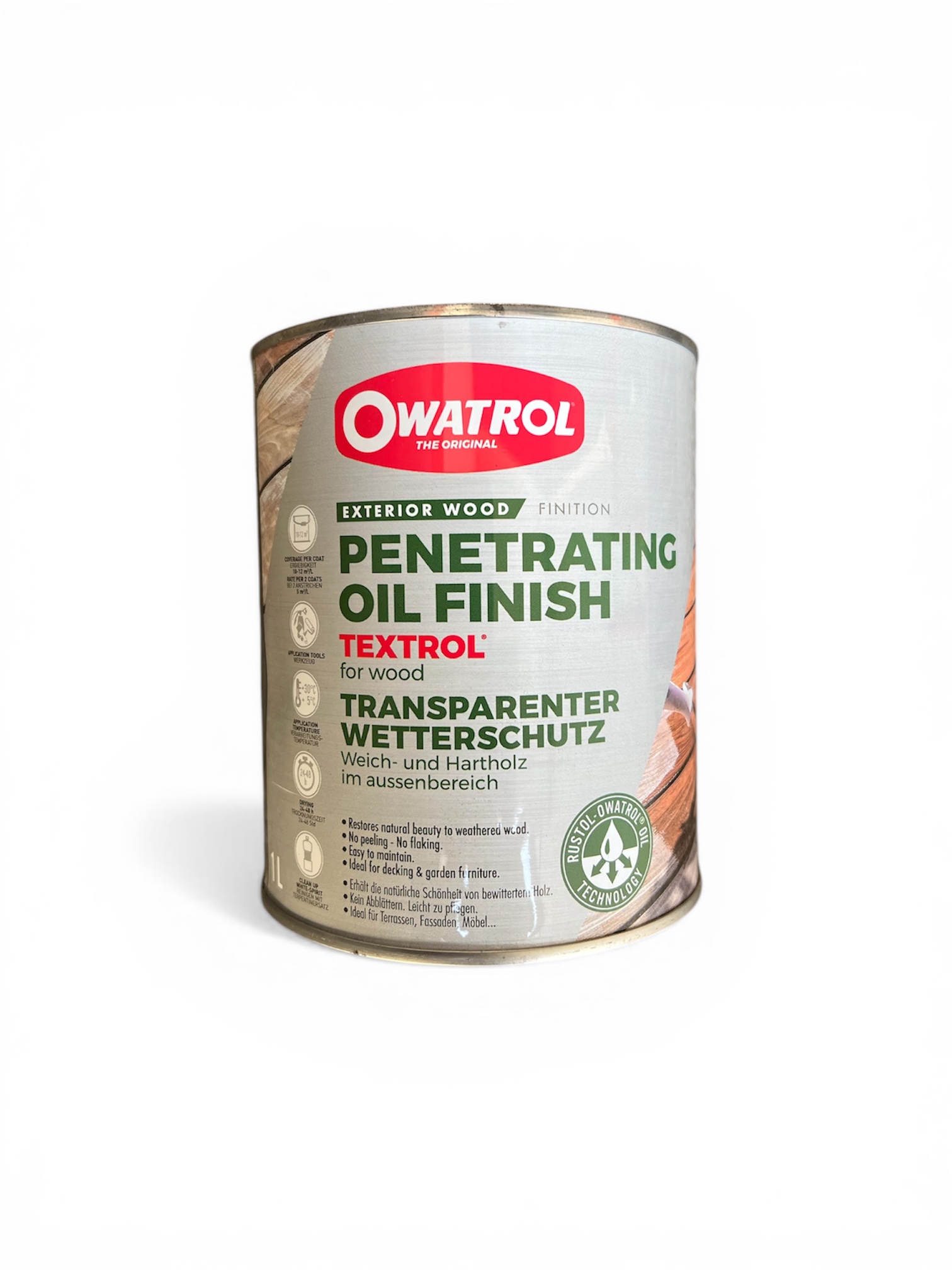 Owatrol Textrol ist ein hochwertiges, lufttrocknendes Naturöl mit besonders hoher Eindringfähigkeit. Es schützt Holz langfristig vor Witterungseinflüssen und betont gleichzeitig die natürliche Struktur und Farbe des Materials.